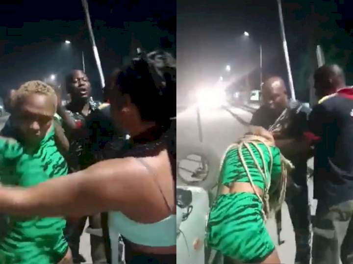 Lagos police officers caught on camera assaulting lady for attempting to record them during a confrontation with an Uber driver
